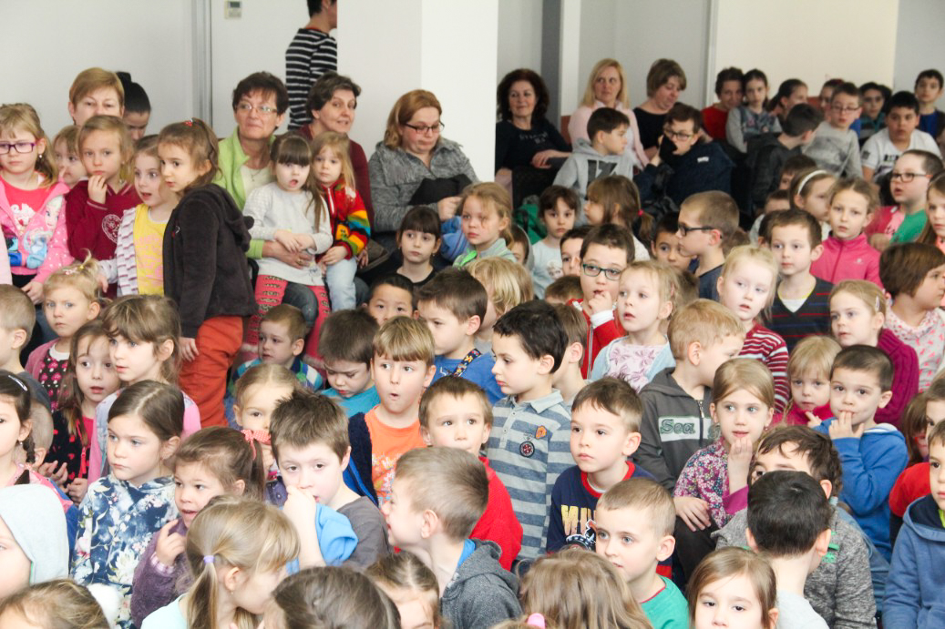Az első napon zsúfolásig megtelt a rendezvényközpont nagyterme óvodásokkal és kisiskolásokkal, akik Dávid és Góliát bibliai történetére voltak kíváncsiak.