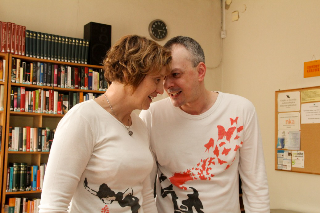 A Jókai Mór Városi Könyvtárban az észak-komáromi Jókai Színház két művésze, Bandor Éva és Olasz István adták elő szerelmes összeállításukat, melynek során a szerelembe esés fázisait elevenítették fel az óvodás kortól a felnőtt létig. A
