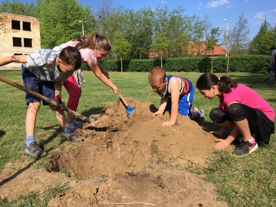 Szintén a Föld napja alkalmából iskolánk 3. és 4. a osztálya csatlakozott a „Zöld kéz” faültetési programhoz, amelynek keretében platán és tölgycsemetéket ültettek diákjaink az őket kísérő lelkes szülők és pedagógusok segítségével, városunk zöldebb környezetéért. Köszönet mindezért a Városgazda Kft-nek, valamint Szarka György kertészmérnök vállalkozónak" – olvasható az iskola közleményében.