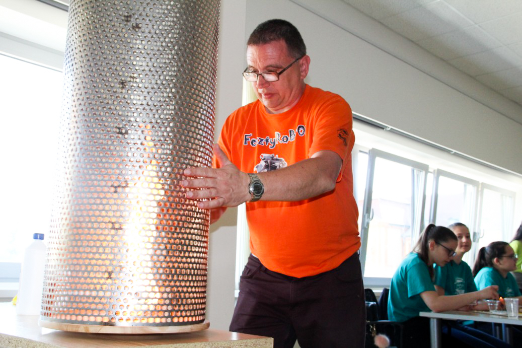 - A tanulók általában már az első fizikaórán kialakítanak magukban egy képet arról, hogy a fizika nehéz, unalmas és magolós tantárgy. Ez azonban nem feltétlenül igaz. Kísérletek elvégzésével lehet izgalmas és látványos. Több olyan kísérletet mutattunk be itt is, amik nagyon meghökkentették a diákokat, rögtön magyarázatot is szerettek volna kapni a látottakra - mondta el Slezsák Zsolt.