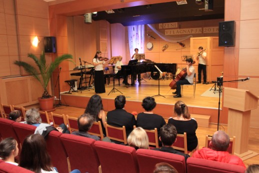 a zene célja nem az, hogy ítéletet mondjunk róla, hanem, hogy táplálkozzunk vele. A zene lelki táplálék és semmi mással nem pótolható. Aki nem éle vele: lelki vérszegénységben él és hal. Teljes lelki élet zene nélkül nincs. Vannak a léleknek régiói, melyekbe csak a zene világít be. A zene rendeltetése: belső világunk jobb megismerése, felvirágozása és kiteljesedése.E gondolatok szellemében a jeles napon városunkban is számos program várt minket. 9.30-tól óvodásoknak szóló hangszerbemutató zajlott a zeneiskola Egressy teremében, ahol 14.00 órától „egész napos zenehallgatásra” várták az érdeklődőket.