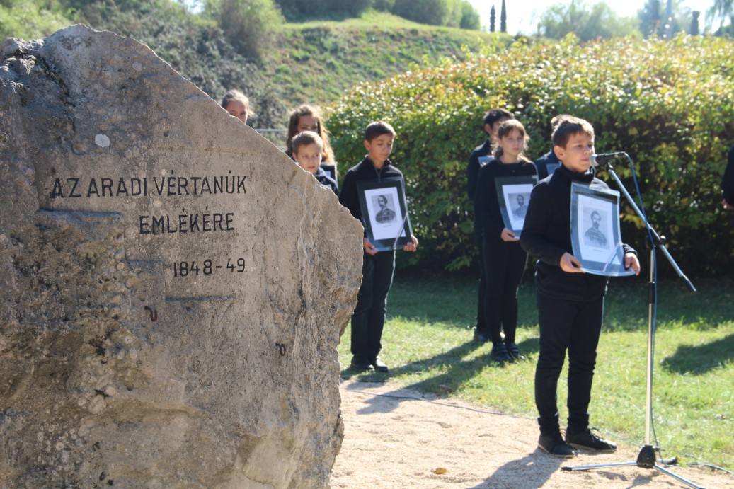 Az 1848-49-es forradalom és szabadságharc leverése után véres megtorlás várt a magyarokra. 1849. október 6-án Aradon tizenhárom kivégzést hajtottak végre. Az Aradi vértanúk terén a mártírokra emlékezett a város. Ezúttal a Petőfi Sándor Általános Iskola diákjai készültek műsorral. Beszédet mondott Molnár Csabáné igazgató.