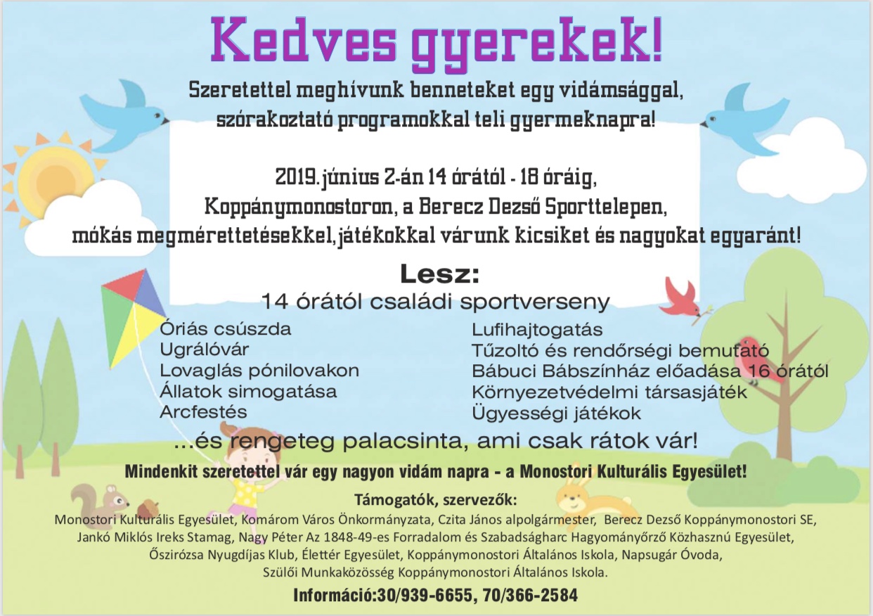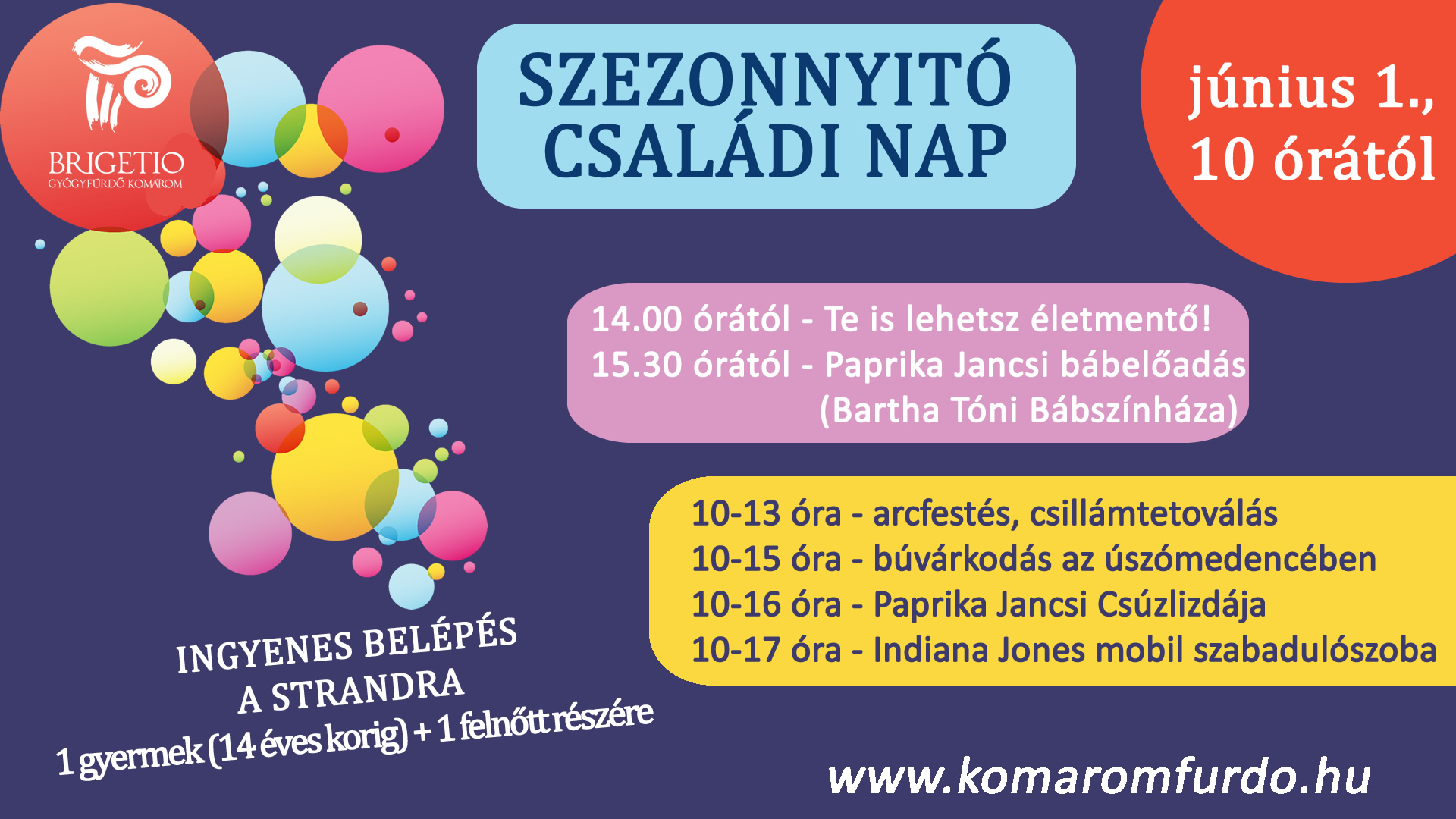 Június első hétvégéjén is számos színes rendezvény várja a kicsiket és nagyobbakat, illetve valamennyi kedves komáromi családot a Brigetio Gyógyfürdőben és Koppánymonostoron! Részletek a plakátokon!