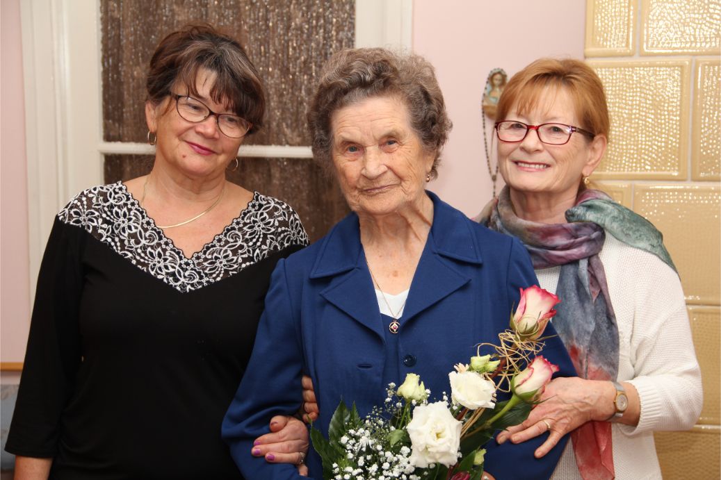 A szintén 95. születésnapját ünneplő Fekete Ferencné, Julika néni tősgyökeres komáromi. A Lengyárban dolgozott, majd a helyi ruhatisztítóból ment nyugdíjba közel 40 évvel ezelőtt. Három lánya közül sajnos az egyik tragikusan korán ment el, két másik lányának családja 7 dédunokával és egy ükunokával örvendeztette meg.