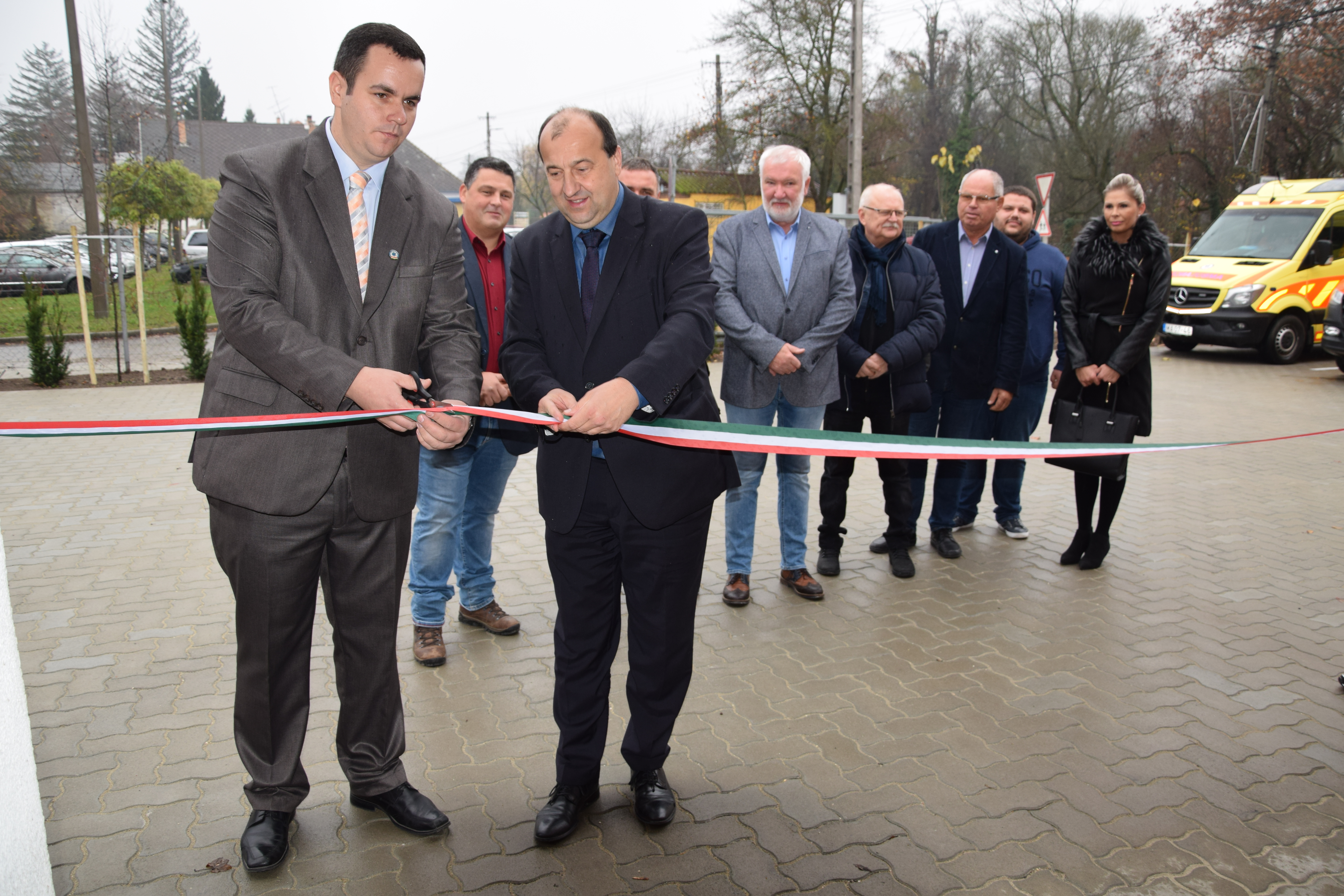 Dr. Kreft-Horváth Loránd alpolgármester, Bálint László megyei vezető mentőtiszt, és Kurdi Balázs állomásvezető köszöntőjét követően, a kivitelezést végző cégek nevében Dibusz Péter szólt a megjelentekhez, majd dr. Molnár Attila polgármester méltatta a bajtársak komáromiak érdekében végzett szolgálatát.