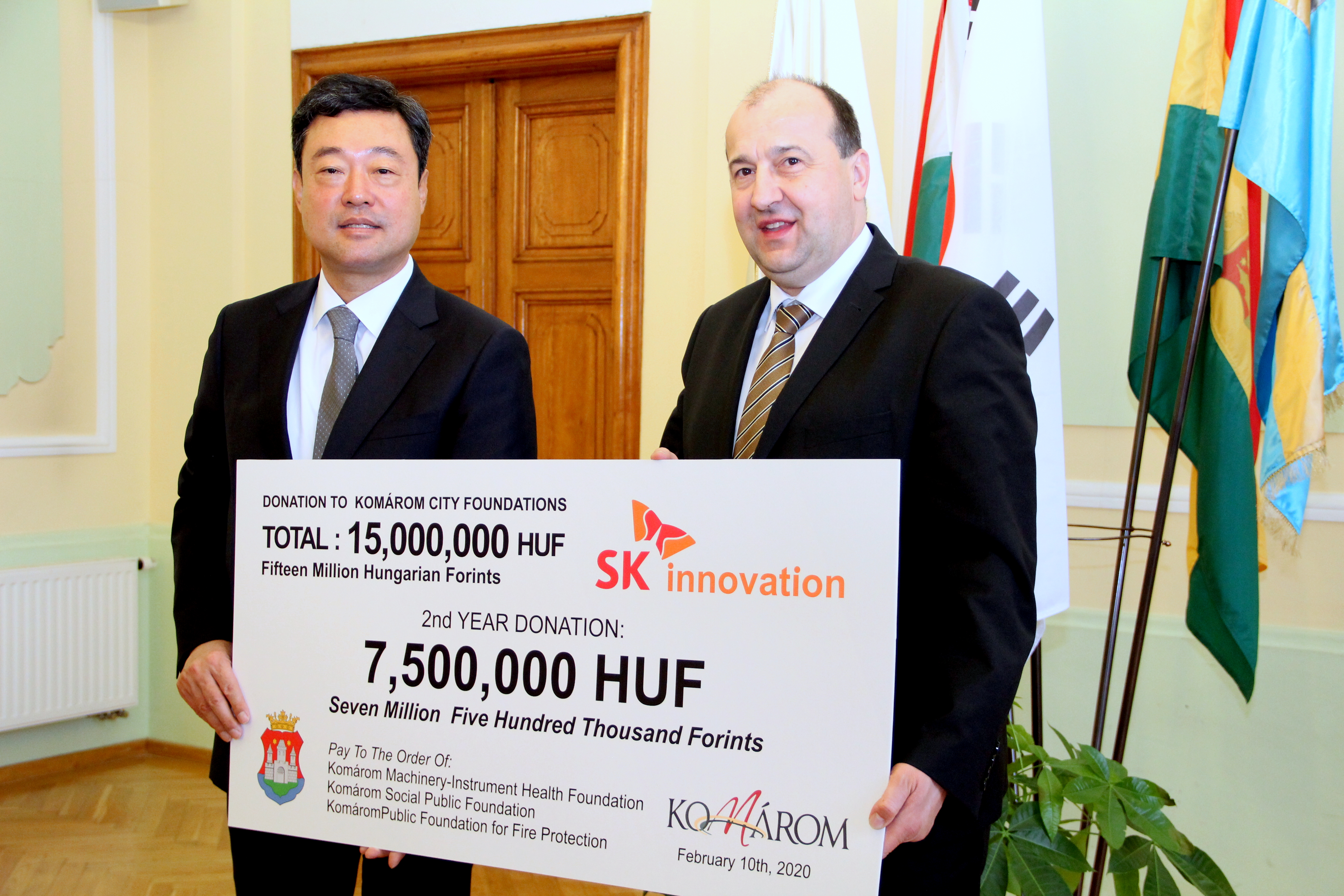 Az SK Innovation tavaly 15 millió Forint értékű adományt ajánlott fel városunk három közalapítványa részére.