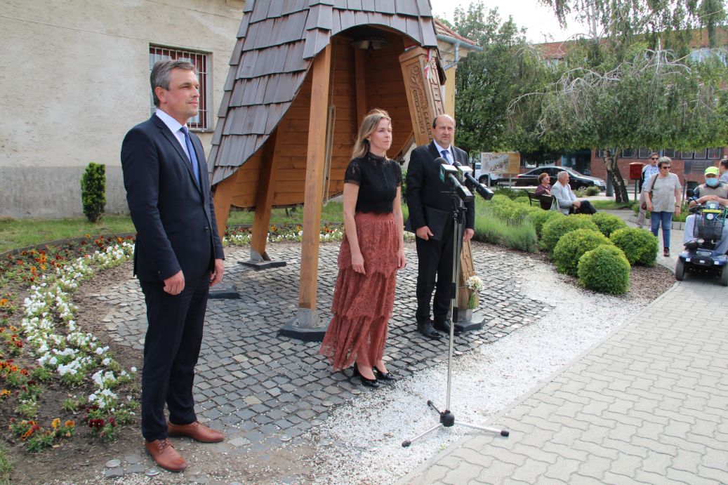 Fél ötkor Keszegh Bélával, Észak-Komárom polgármesterével együtt megkongatták a 2018-ban emelt emlékharangot, s annak száz másodperces zúgása után a másik polgármester is szólt a jelenlevőkhöz. Egyebek mellett megfogalmazta az együtt 55 ezer lakosú Észak- és Dél-Komárom közös célját: a régió legfontosabb bástyájává kell válnia, hiszen egykor Magyarország 5. legnagyob városa volt. A haranglábon József Attila 1922-ben írt versének az akkori közhangulatot kifejező és a trianoni békediktátum során elvesztett területek visszafoglalását előre vetítő „Nem, nem, soha.!“ részlete olvasható.