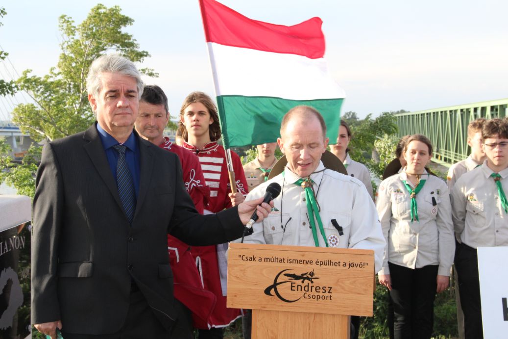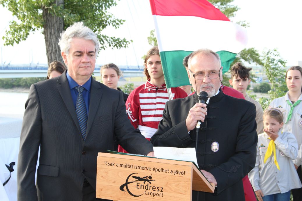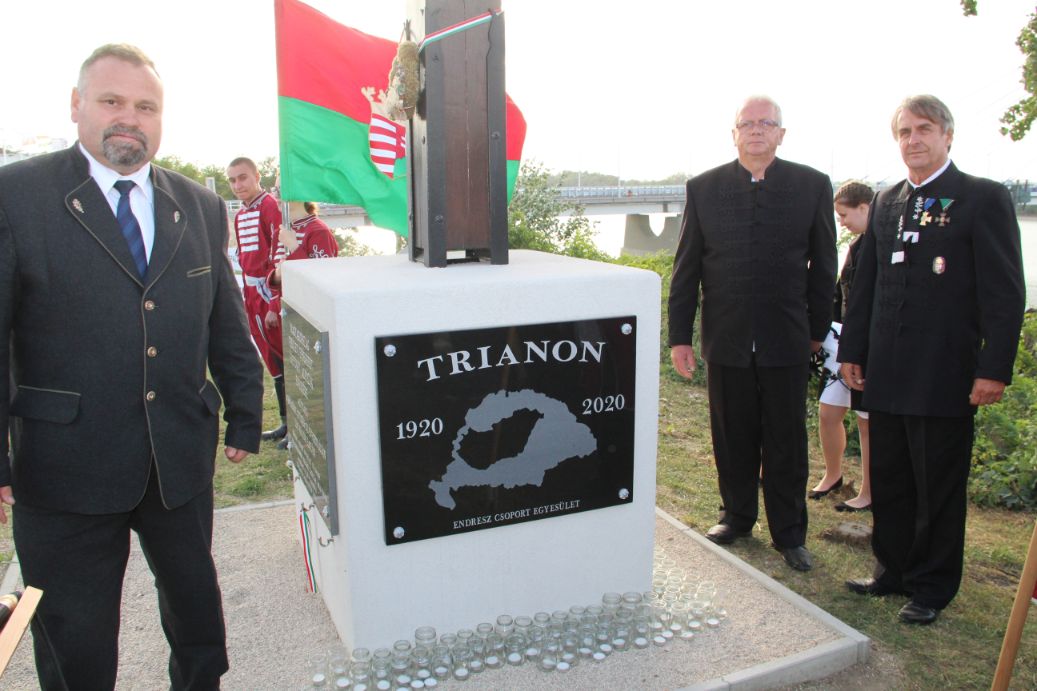 Ugyanott fél hétkor, az Endresz Csoport szervezésében emléktáblát is avattak Komárom kettészakításának és a trianoni békediktátum aláírásának 100, évfordulója alkalmából. A Himnusz újbóli felhangzása, a rövid kultúrműsor, a Komáromi Lapok 100 évvel ezelőtti vezércikkének felolvasása és a koszorúzás után Arlett Tamás, az Endresz Csoport elnöke hangsúlyozta: ha nem egyenként, hanem közösen merünk nagyot álmodni, az már az új valóság kezdete lehet.