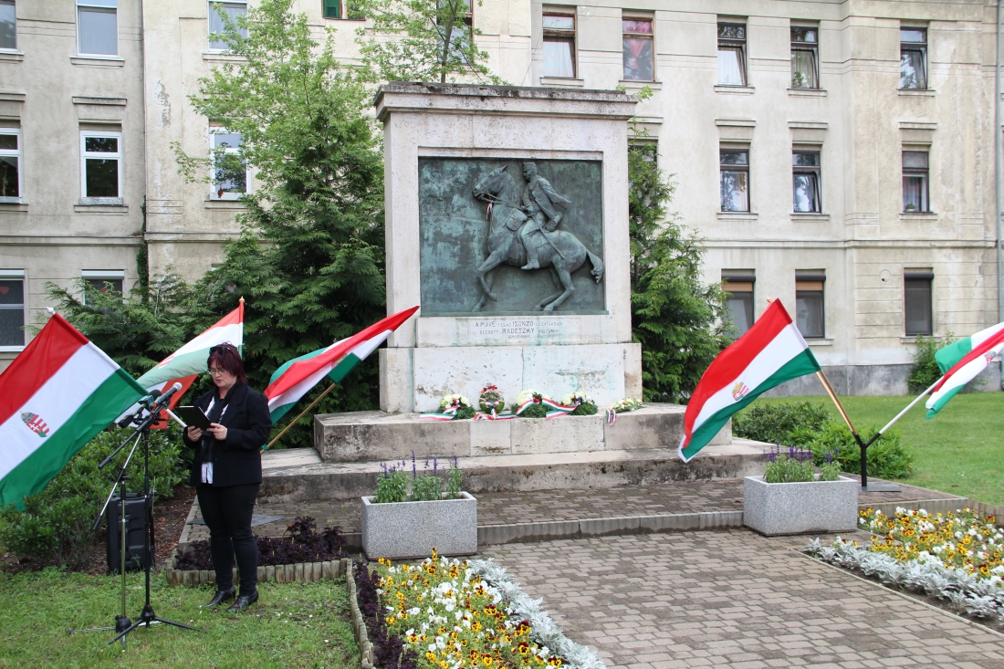 A megemlékezőket Hajnal Dóra önkormányzati képviselő, a Humán bizottság elnöke köszöntötte. Az eseményen, a szobor talapzatánál dr. Molnár Attila polgármester, Molnárné dr. Taár Izabella a Járási Hivatal vezetője, Turi Bálint alpolgármester és Szabó István önkormányzati képviselő koszorúzott.