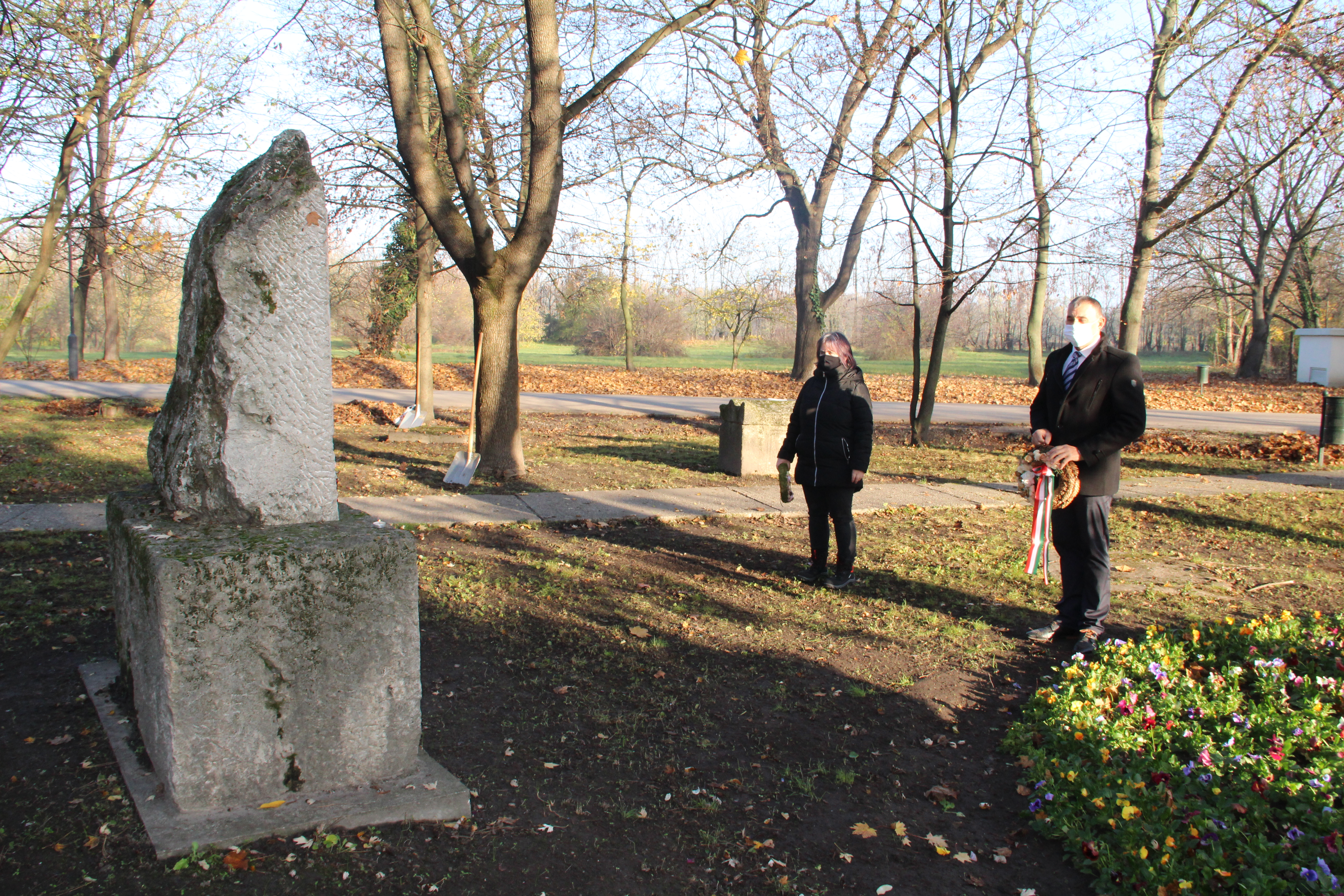 Az emlékezés koszorúit Számadó Emese, a Komáromi Klapka György Múzeum igazgatója, valamint Takács József, a körzet önkormányzati képviselője helyezték el.