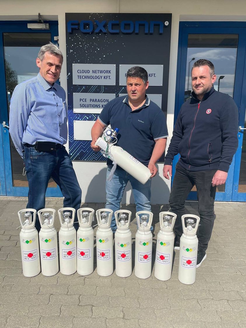 Tálos Péter, a Foxconn cégcsoport alelnöke a múlt hét folyamán mosható szájmaszkokat és 10 orvosi oxigén reduktort ajánlott fel a komáromi egészségügy számára. Az eszközöket dr. Kreft-Horváth Loránd, háziorvos, egészségügyért felelős alpolgármester vehette át.