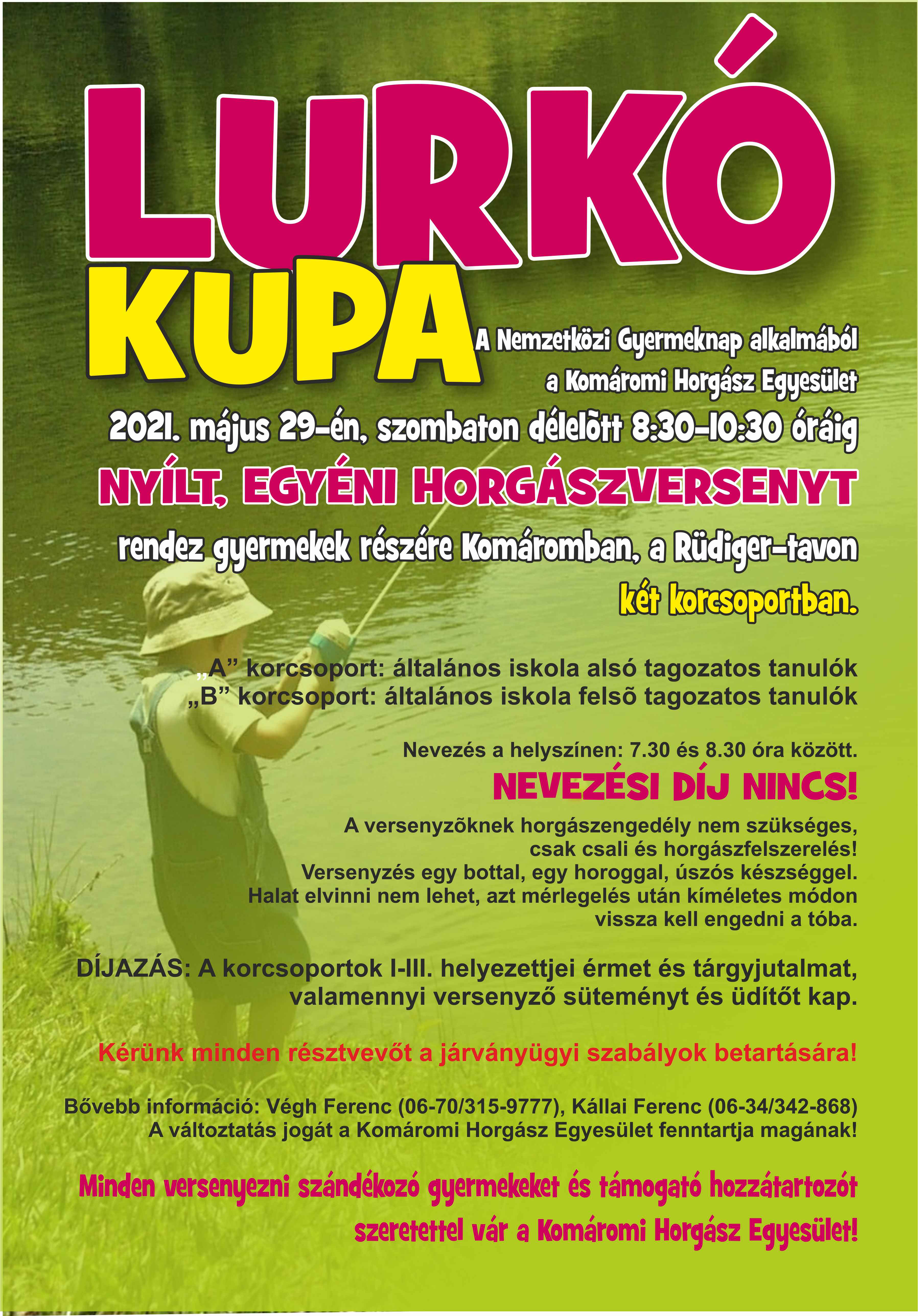 A Komáromi Horgász Egyesület, a gyermeknap alkalmából május 29-én 8.30-tól, idén is megrendezi a „Lurkó-kupa”horgászversenyt.