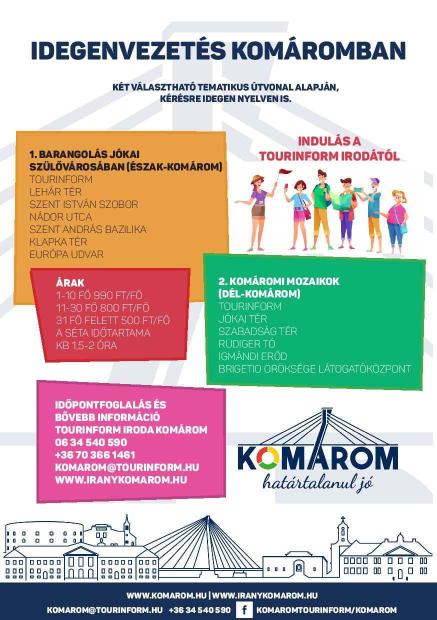 Időpontfoglalásra és bővebb információ kérésére a komáromi Tourinform Irodában van lehetőség személyesen, vagy a 06-34-540-590- es telefonszámon, a 0670-366-1461-es mobilszámon, illetve a www.iranykomarom.hu oldalon, valamint a Tourinform Iroda Facebook oldalán van lehetőség.