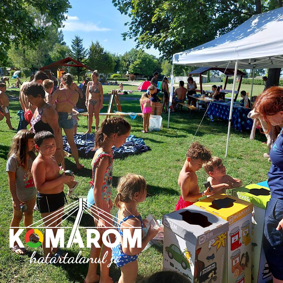 A Klímabarát Komárom projekt keretében rendezett programon a gyerekek megismerhették a szelektív hulladékgyűjtést, természetvédelemmel és fenntarthatósággal kapcsolatos több állomásból álló játékos feladatokon vehettek részt.