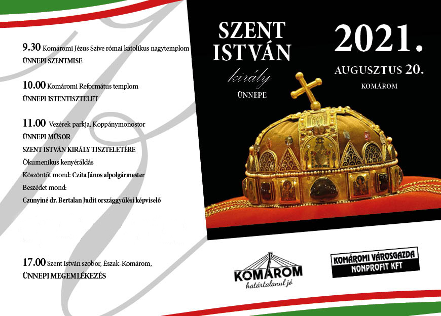 2021. 08. 16.Ünnepi megemlékezések Komáromban augusztus 20-ánVárosunkban több helyszínen is megemlékezünk államalapító Szent István királyunkra.