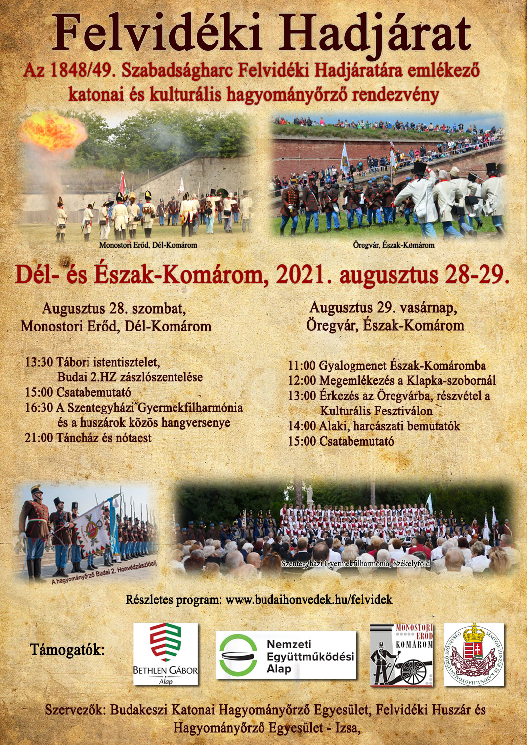 Idén a Felvidéki Hadjárat kétnapos rendezvényként, Dél- és Észak-Komáromban kerül megrendezésre. A programban az 1848/49-es szabadságharc huszár, gyalogsági és tüzér hagyományőrző csapatai vesznek részt a Kárpát-medence teljes területéről.