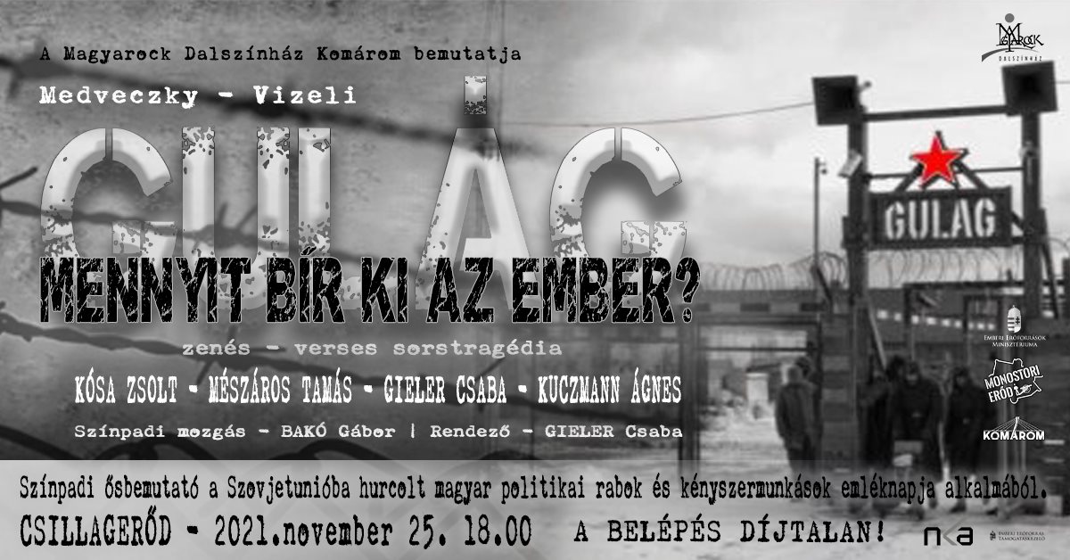 Zenés sorstragédia a Magyarock Dalszínház előadásában a Szovjetunióba hurcolt magyar politikai rabok és kényszermunkások emléknapján, november 25-én, 18.00 órától a Csillagerődben.