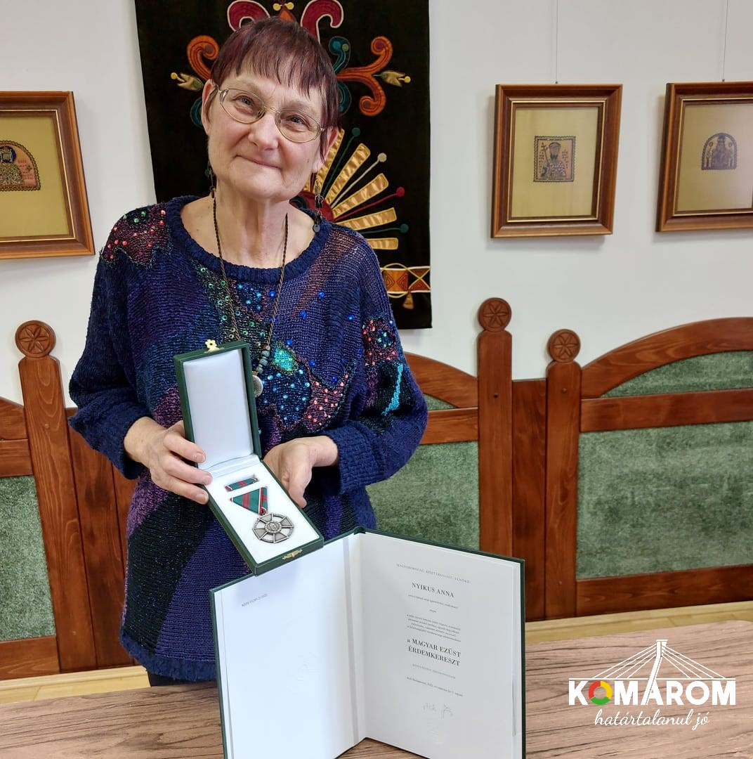 A szőnyi Petőfi Művelődési ház szakmai vezetője, a Megyei Népművészeti Egyesület elnöke, a népi szövés-hímzés terén végzett, a nemzeti identitást erősítő értékes, egyedi tárgyalkotó művészete, valamint jelentős szervező és közösségépítő tevékenyége elismeréseként vehette át a Magyar Ezüst Érdemkereszt kitüntetést március 11-én a Pesti Vigadóban, Latorcai Csaba János közigazgatási államtitkártól.