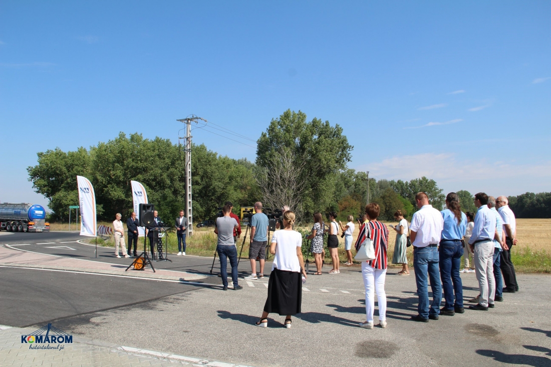 A Magyar Közút Nonprofit Zrt. ez év elején kezdte meg az érintett főút 5,5 kilométeres szakaszának felújítását a komáromi körforgalom és az M1-es autópálya között. A kizárólag hazai forrás felhasználásával, 1,4 milliárd Forintból elkészült utat július 27-e délelőtt adta át sajtótájékoztató keretében Czunyiné dr. Bertalan Judit, térségünk országgyűlési képviselője, dr. Molnár Attila polgármester és Szilvai József Attila, a Magyar Közút Nonprofit Zrt., vezérigazgatója.
