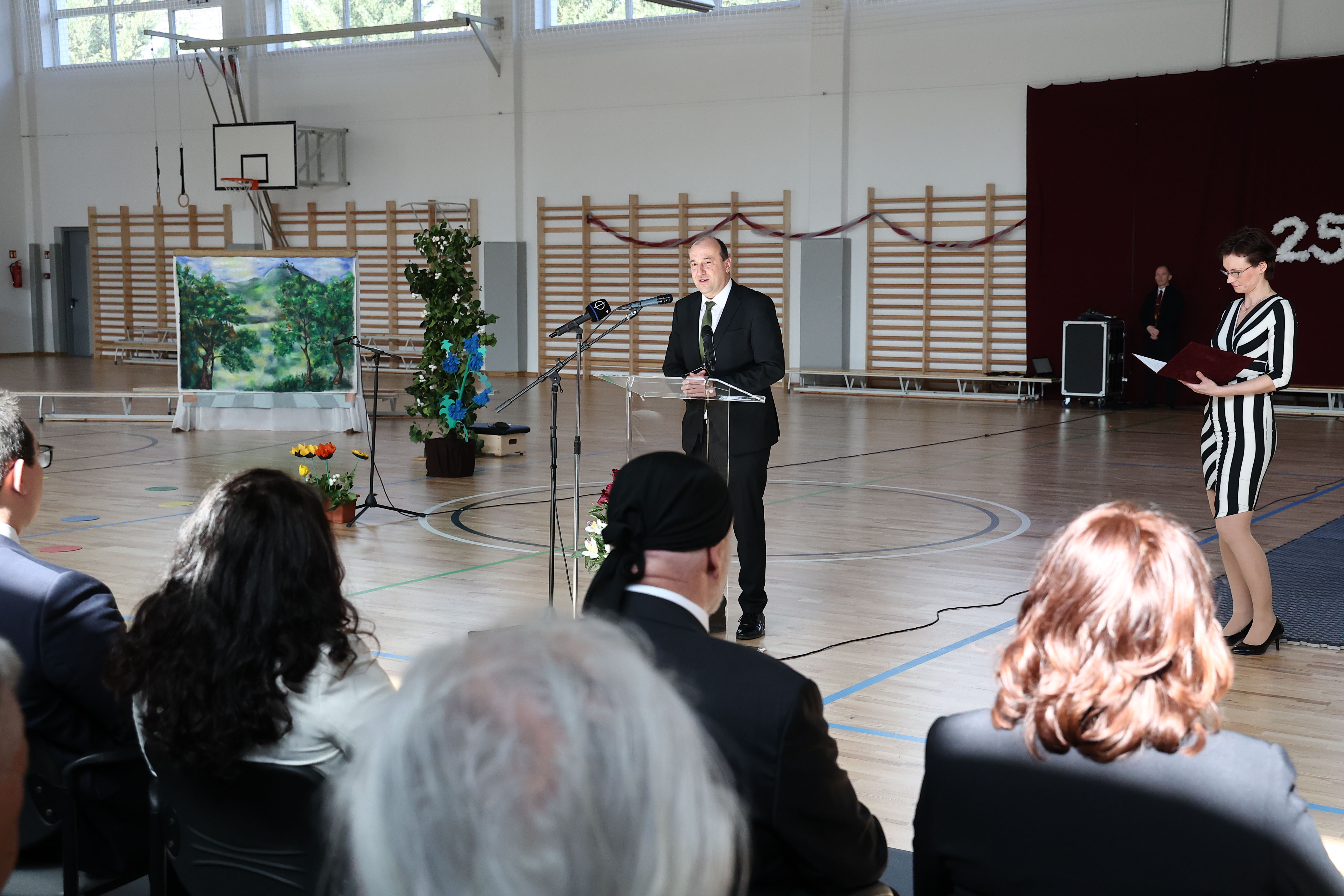 dr. Molnár Attila városunk polgármestere. Az óvódások és a diákok ünnepi műsora után, az új tornacsarnokot és használóit