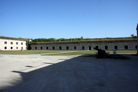 Az erőd belsejébe érve, jobb kéz felől, a keleti szárnyon az istállókat, északi részén a földszinti legénységi épületet (ezt úgy építették, hogy szükség esetén 300 ágyas kórházzá lehessen átalakítani), az udvarba benyúlva az emeletes, alápincézett tiszti épületet pillanthatjuk meg; bal kéz felől pedig az egykori kantin, s a pékség helyezkedik el. A tiszti épület kivételével a helyiségek külső oldalai védőfolyosókhoz csatlakoznak, melyek vonalát, a sáncárokba beékelődve, nyugatról és délről egy-egy emeletes, azonos elrendezésű "bástya" (caponniere) töri meg. A külső kaputól a főbejáratig vezető utat oldalazó tűzzel az un. "Flankierungsthurm" fedezi. Ebben található az erőd legszebb helyisége, a boltíves pillérekkel tagolt levente oktatóterem.